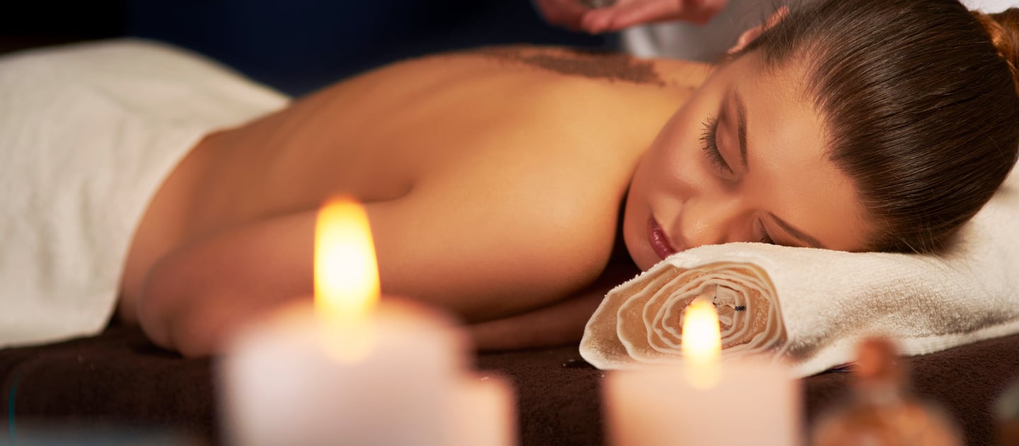 Aplicação de massagem utilizando pedras aquecidas sobre o corpo.
